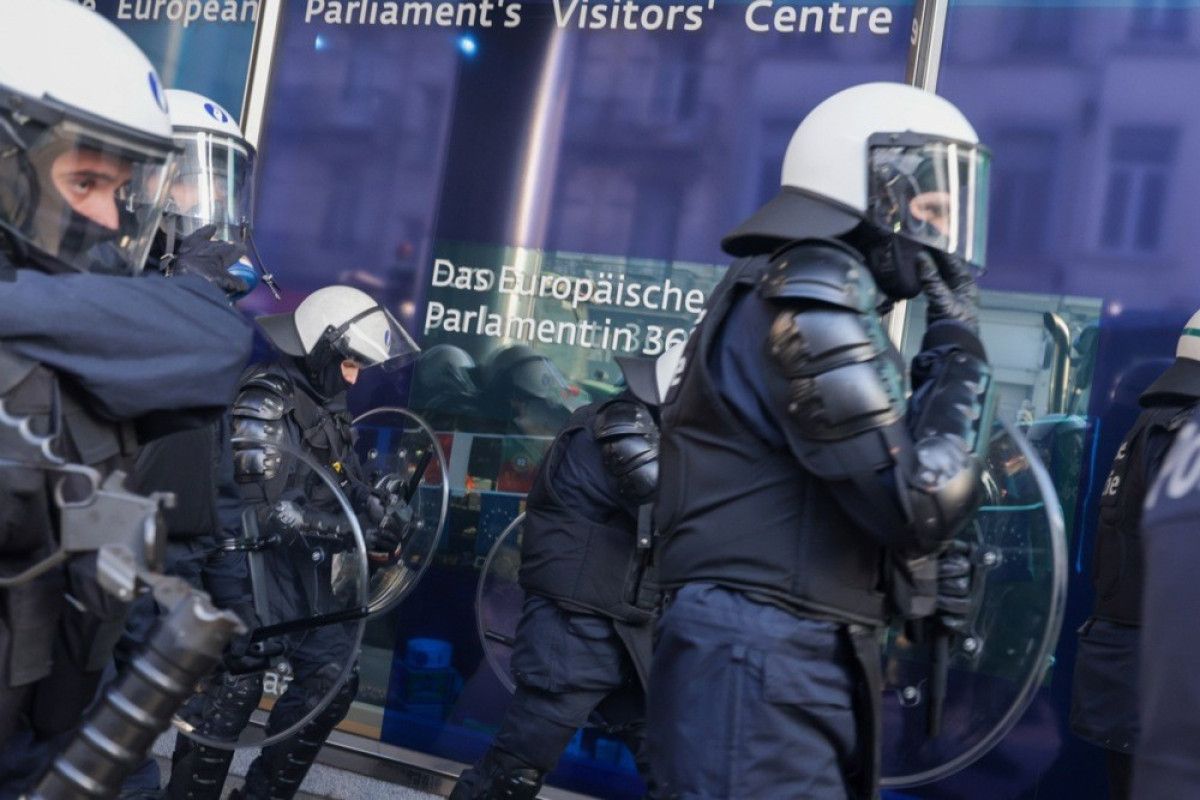 Protestocular, Avrupa Parlamentosu binası önünde ateş yakarken, çevredeki binalara taş, sis bombası ve havai fişek attı. Lüksemburg Meydanı’nda kurulan polis barikatları traktörlerle yıkıldı. Gösteriler sırasında sokaklar adeta savaş alanına döndü.
