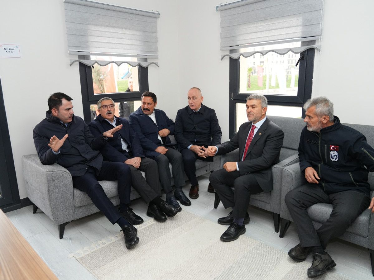 Emek Mahallesi’nde örnek daireyi inceleyen Bakan Kurum ardından şantiyede işçi ve mühendislerle bir araya geldi.