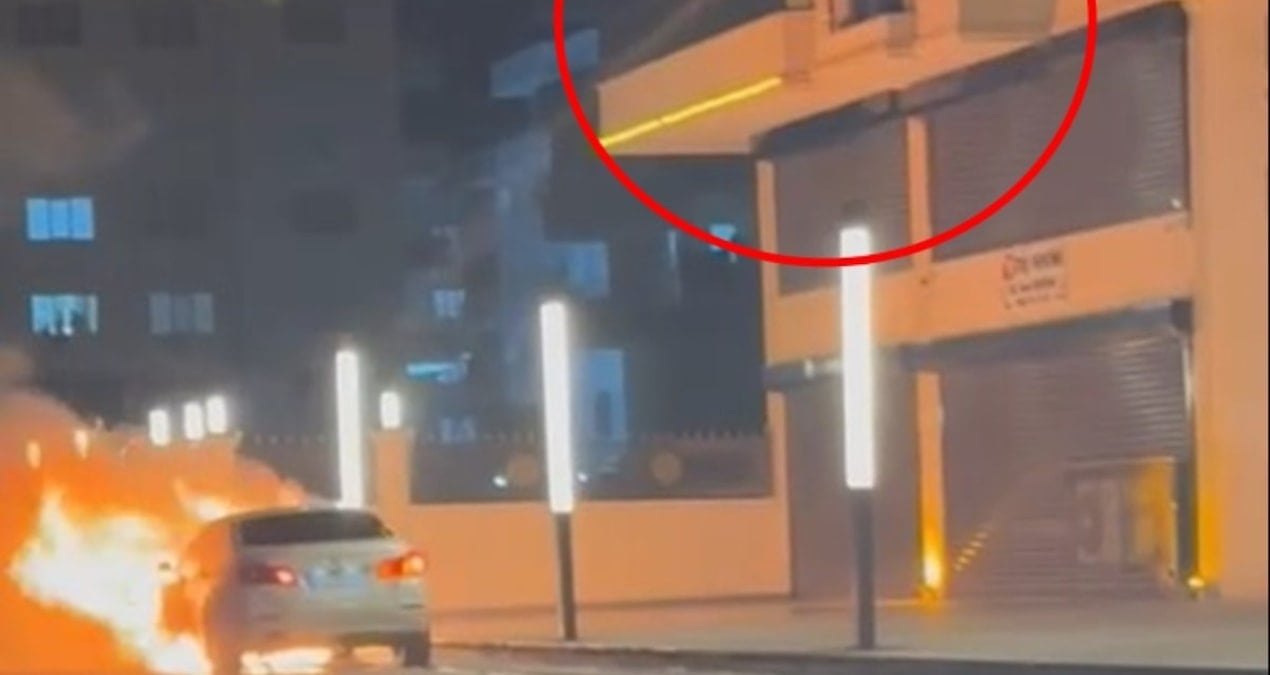 Alev alan otomobile, balkondan müdahale