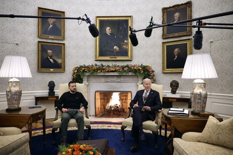 ABD Başkanı Trump ve Ukrayna lideri Zelenski’nin görüşmesinden. Arka planda Oval Ofis’i süsleyen altın dekorasyonlar dikkat çekiyor. ŞÖMİNENİN ÜZERİ ALTINLA DOLDU